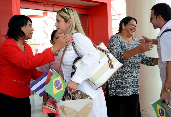 Los 204 médicos proveniente de Sao Paulo fueron recibidos por Mercedes López Acea, miembro del Buró político del Comité Central del Partido y la Doctora Regla Angulo Pardo, viceministra de Salud Pública, entre otros funcionarios.