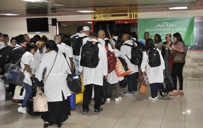 Estaban tomadas de la mano, como una extensión de la otra en aquel pequeño salón del aeropuerto donde no cabía un alma más. Y su timidez no iba a juego con el mérito enorme de lucir sus batas blancas, sus batas impolutas y de regreso, como han hecho otros miles ante el reclamo de la patria. Una de ellas me dijo: «estoy feliz», y se encogió de hombros; la otra simplemente repitió el gesto, como si yo entendiera todo lo que ese ademán pretendía, o como si sobraran palabras en aquella entrevista de madrugada y de frío.