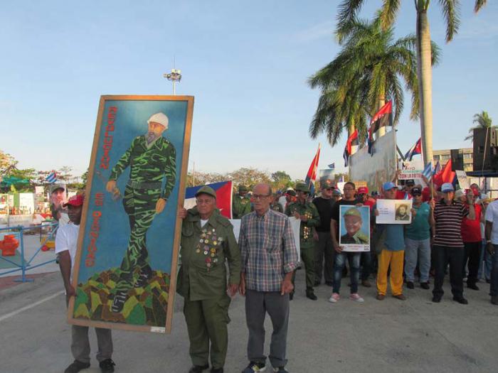 La imagen en vidrio del Comandante en jefe Fidel Castro, con un casco de constructor y una llave en su mano derecha, obra de Raffaele Testagrossa, artista italiano residente en Cuba, dio un matiz peculiar al desfile avileño por el Primero de Mayo.