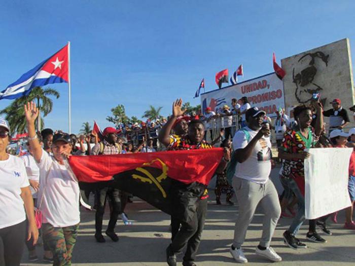 Estudiantes angolanos desfilan por la Plaza Mayor General Máximo Gómez Báez