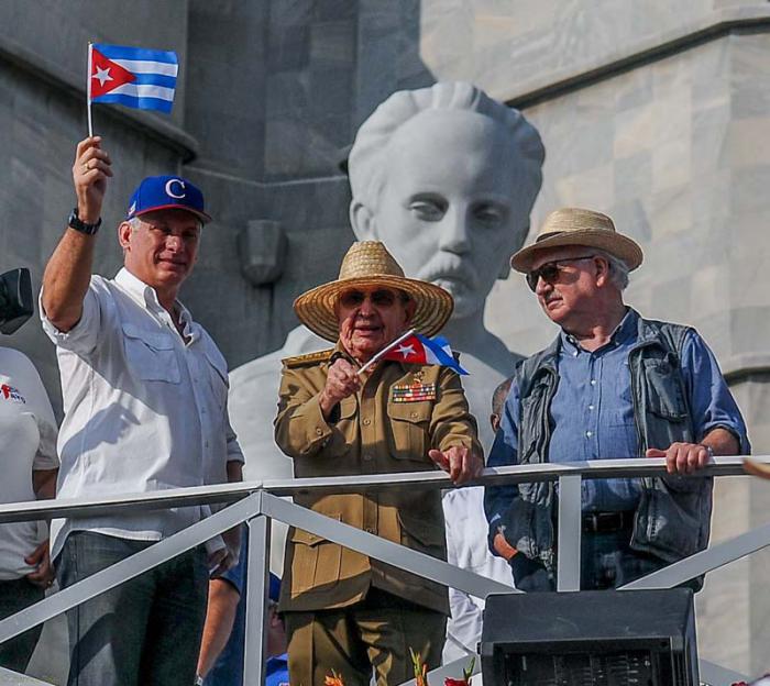 Acto Central por el 1rto de Mayo, Día Internacional de los Trabajadores, en la Plaza de La revolución José Martí, Presiden el acto El 1er Secretario del Comité Central del PCC, General de Ejército Raúl Castro Ruz, el Presidente de los Consejos de Estado y de Ministros, Miguel Díaz Canel Bermúdez