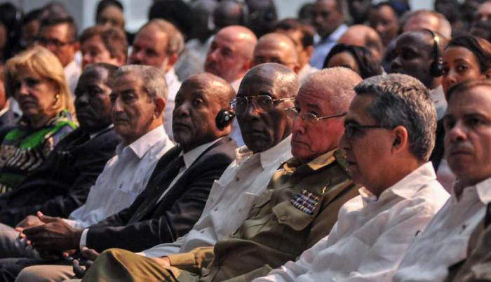 Acto central por el 40 Aniversario de la Masacre de Cassinga, en la Sala Universal de las FAR, presidieron Salvador Valdés Mesa (C), Miembro del Buró Político del Comité Central del Partido Comunista de Cuba y Primer Vicepresidente del Consejo de Estado, Nangolo Mbumba (C.I), Vicepresidente de Namibia, General de Cuerpo de ejército Álvaro López Miera (C.D), Viceministro Primero de las Fuerzas Armadas Revolucionarias Jefe del Estado Mayor y José Ramón Balaguer (3ro.I), jefe del departamento de Relaciones Internacionales del Comité Central del Partido Comunista