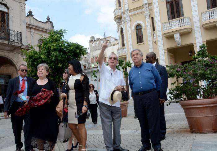 Recorrido por la Habana Vieja del Secretario General de las Naciones Unidas Antonio Guterres acompañado de Eusebio Leal Historiador de la Habana