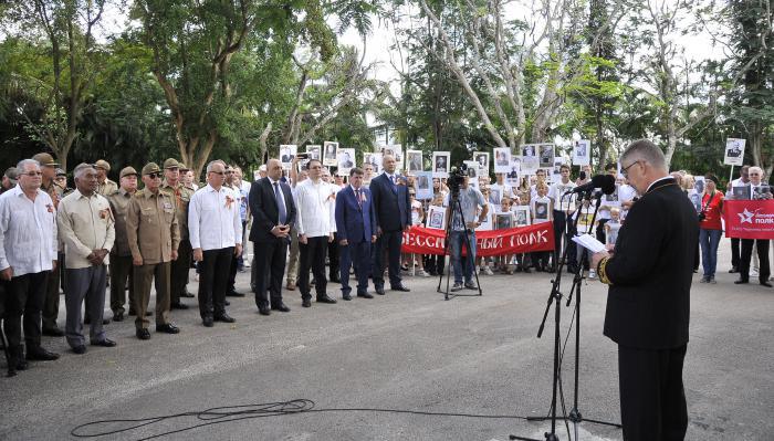 Acto por el 73 Aniversario de la Derrota del facismo por el ejercito Ruso,palabras Mijail Kamynin embajador de Rusia en Cuba estando presente general de cuerpo de ejercito y viceministro de la FAR Joaquín Quinta Sola, oficiales de la FAR y el cuerpo diplomatico
