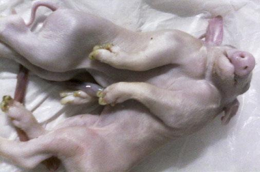 Cerdo con una cabeza y dos cuerpos en Pinar del Río