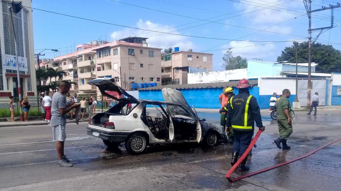 El vehículo estatal chapa B109567, al parar en el semáforo de Infanta y Amenidad, en el Cerro, se incendió por el motor y sus tres ocupantes lo abandonaron de inmediato llamando a los bomberos, mientras un conductor de un panel blanco paró frente al taller automotríz de la Unión Eléctrica y con el extintor de su carro, en una acción de arrojo y valor, trató de sofocar el siniestro, pero fue infructuoso. Muchos vehículos a pesar del pelígro no detenían su marcha y quienes lo hicieron, solo fue para accionar sus celulares. Gracias a la rápida acción de los bomberos se pudo sofocar el incendió, lamentándose solo daños materiales del vehículo.