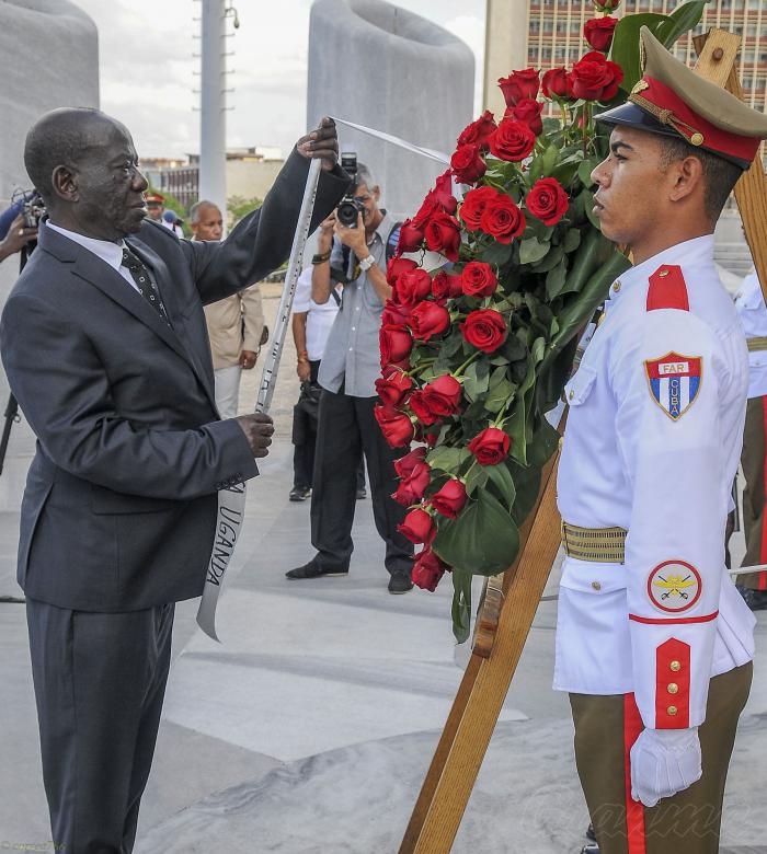 El Vicepresidente de la República de Uganda Exmo Sr. Edward Kiwanuka Ssekandi, coloca ofrenda floral en el Memorial José Martí