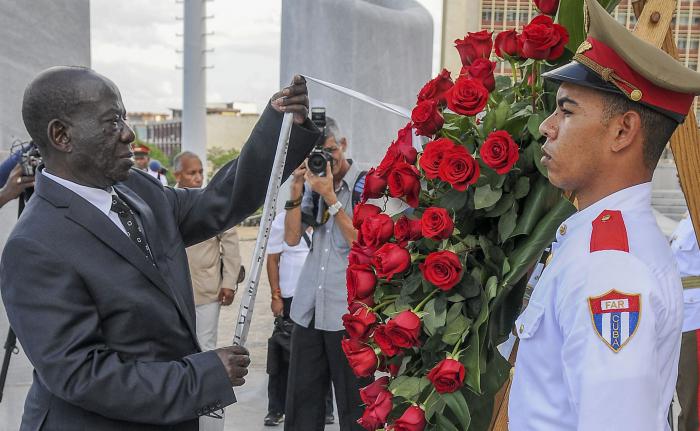 El Vicepresidente de la República de Uganda Exmo Sr. Edward Kiwanuka Ssekandi, coloca ofrenda floral en el Memorial José Martí