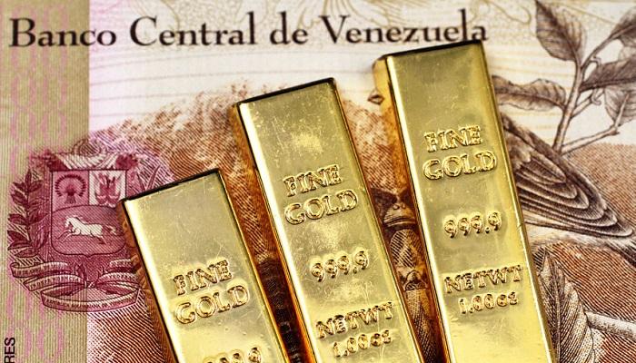 120350117 - a macro image of three gold bars with a one hundred venezuelan bolivares bank note close up