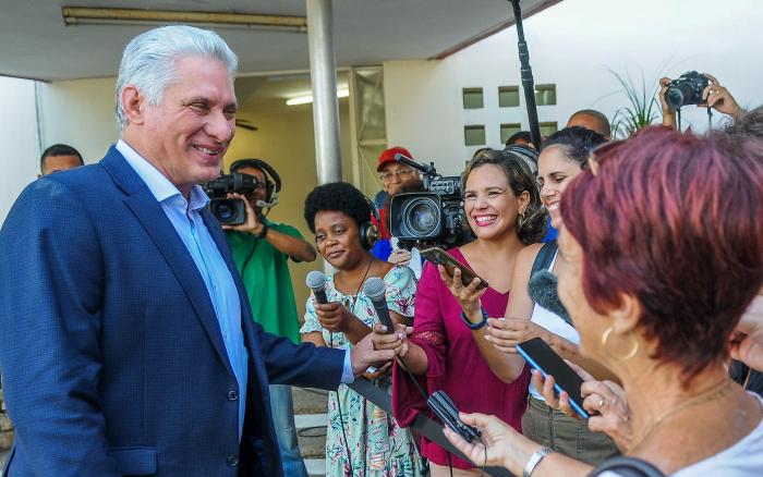 El Primer Secretario del PCC y Presidente de Cuba, Miguel Díaz Canel Bermúdez junto a su esposa Liz Cuesta, ejercen su derecho al voto para elegir los representantes en los órganos de gobierno municipales del poder popular