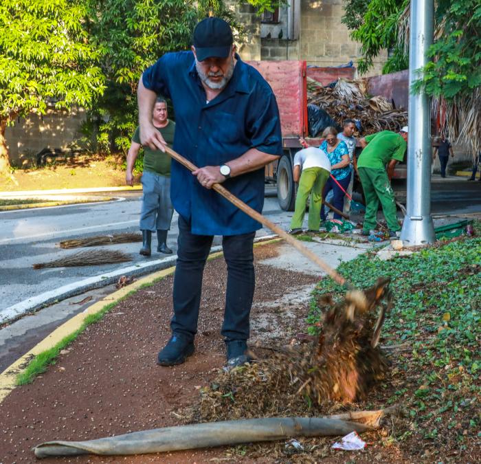 Trabajo voluntario de higienización en áreas del Palacio de La Revolución con la participación del Presidente Miguel Díaz Canel Bermúdez y el Primer Ministro Manuel Marrero Cruz