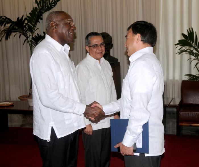 Salvador Valdés Mesa,vicepresidente del Consejo de Estado, acompañado por Marcelino Medina Gonzalez, ministro interino de Relaciones Exteriores,recibio las carta credenciales del embajador del Estado Plurinacional de Bolivia Juan Ramón Taborga