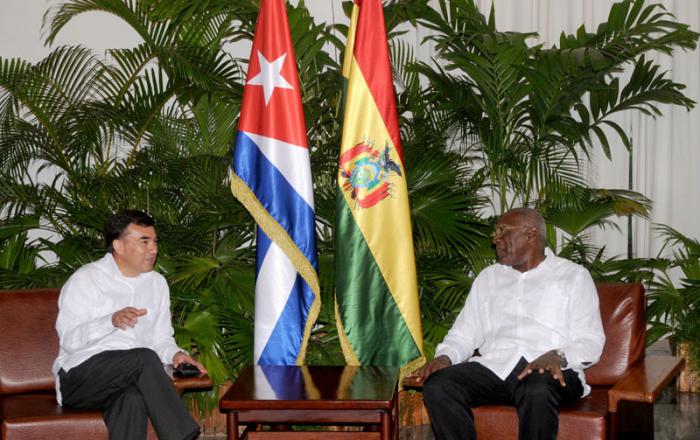 Salvador Valdés Mesa,vicepresidente del Consejo de Estado, acompañado por Marcelino Medina Gonzalez, ministro interino de Relaciones Exteriores,recibio las carta credenciales del embajador del Estado Plurinacional de Bolivia Juan Ramón Taborga