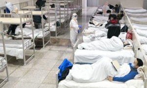 Pacientes infectados con el nuevo coronavirus en un hospital provisional habilitado a partir de un centro de exposiciones, en Wuhan.