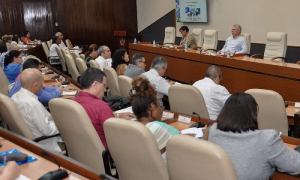 En diálogo con directivos y trabajadores del central Siboney, Machado Ventura reflexionó sobre la necesidad de una respuesta patriótica y productiva de los azucareros cubanos.