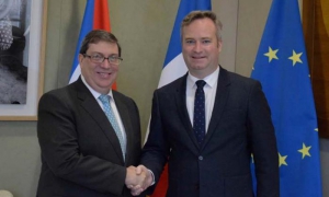 El canciller de Cuba, Bruno Rodríguez Parrilla, y el secretario de Estado del Ministerio para Europa y Asuntos Exteriores de Francia, Jean-Baptiste Lemoyne, conversaron en París