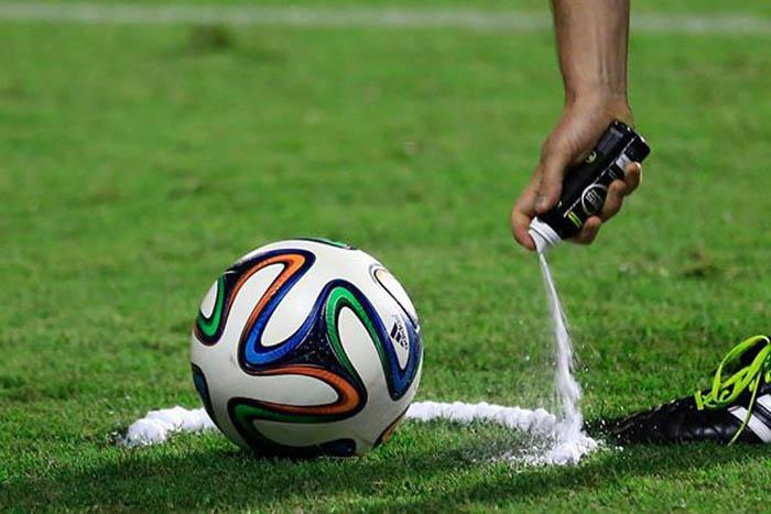 También en la cancha se ha consolidado otra novedosa vertiente: la espuma evanescente en aerosol, herramienta para marcar la distancia entre la barrera y el jugador que va a cobrar una falta, evitando así que los futbolistas a la defensiva se adelanten.