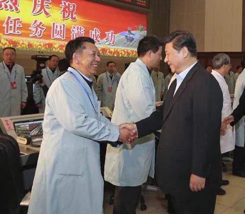 Xi felicitó a los científicos espaciales e ingenieros a cargo del Chang’e-3 por el éxito de la misión a la Luna y transmitió los mejores deseos de nuevo año a nombre del Comité Central del Partido Comunista de China, el Consejo de Estado y la Comisión Militar Central.