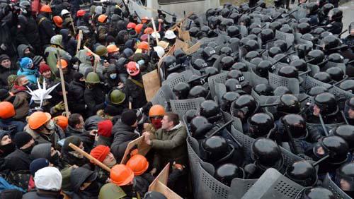 En la céntrica calle Grushevski, cerca de mil manifestantes radicales se enfrentan a la policía con palos, piedras y botellas incendiarias, reportaron esta madrugada los principales canales de televisión.