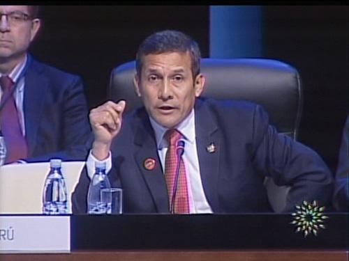 El presidente de la República del Perú, Ollanta Humala, saludó en su intervención que América Latina y el Caribe se hayan autoproclamado como territorio de paz.