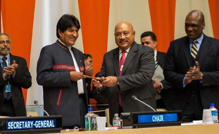 El 8 de enero del 2014 Bolivia asumió la presidencia anual del G-77 + China en una ceremonia realizada en la sede de las Naciones Unidas. El presidente del país sudamericano, Evo Morales, recibió de Fiji la dirección del bloque. Esta es la segunda ocasión en que la nación andina asume las riendas del Grupo ya que su anterior mandato fue en 1990.