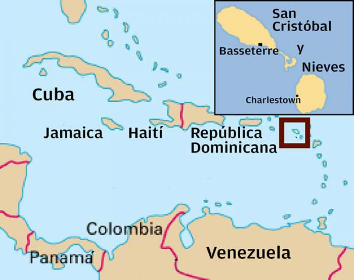 La Federación de San Cristóbal y Nieves se encuentra en la parte norte de las Islas de Barlovento, 19 grados al norte del Ecuador. Posee una extensión territorial de 269 km2 y su población es de cerca de 54 mil habitantes.