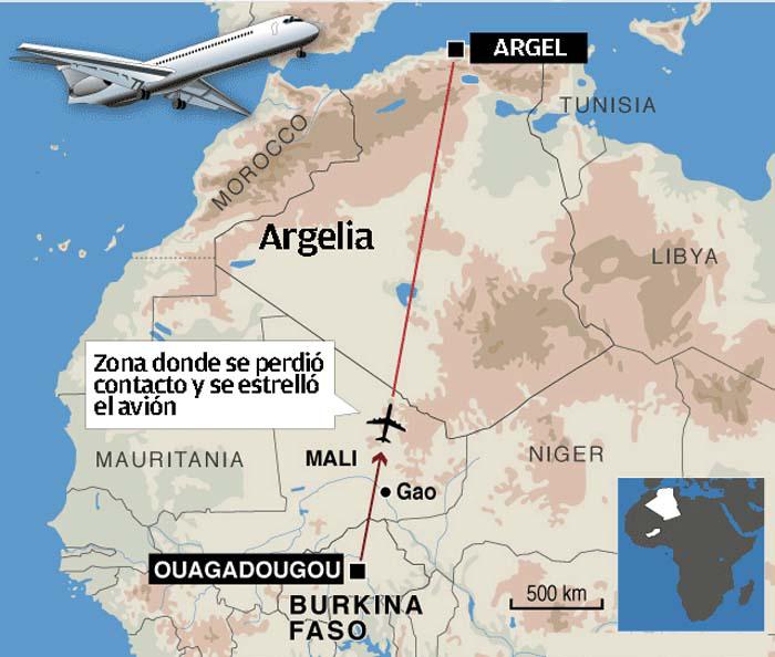 La aerolínea nacional de Argelia, Air Algerie, había asegurado que perdió contacto con uno de sus aviones, unos 50 minutos después del inicio del vuelo del aeropuerto de la capital de Burkina Faso, Uagadugú.