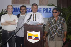 Representantes de esa organización político-militar insurgente debaten con plenipotenciarios del gobierno de Juan Manuel Santos las vías para el resarcimiento de las víctimas del conflicto, como parte de las conversaciones de paz iniciadas por ambas delegaciones en noviembre de 2012.