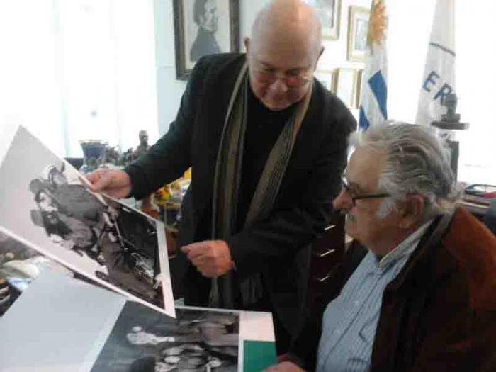 El presidente de la Unión Nacional de Escritores y Artistas de Cuba obsequió a Mujica una carpeta de grandes fotografías de la Revolución cubana y sus libros Biografía de un cimarrón y Oficio de Ángel.