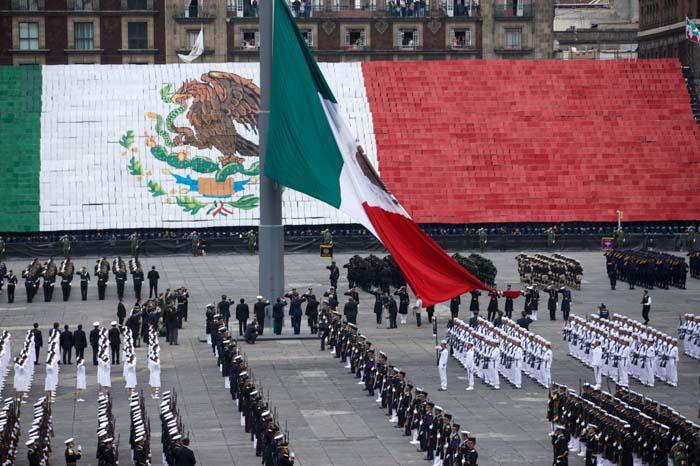 El desfile inició en la Plaza de la Constitución, y ante el presidente se izó una gigantesca bandera nacional de 24 metros de alto por 14 de ancho, en un asta de 50 metros, reportó PL.