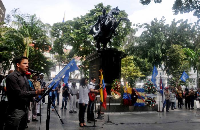 CARACAS.—Con la colocación de una ofrenda floral en la Plaza Bolívar prosiguió este jueves la jornada de conmemoración por el aniversario 134 de la llegada a Caracas de José Martí el 21 de enero de 1881.