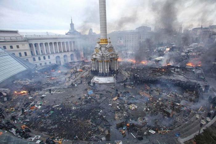 El 18 de febrero del 2014, en este lugar comenzó la fase más mortal de la protesta proeuropea que terminó con un cambio del poder en el país. En estos violentos disturbios participaron el grupo fascista PravySektor y el partido de extrema derecha Svoboda, quienes contaron con el apoyo de Occidente y sus fuerzas especiales para desestabilizar el orden del país.