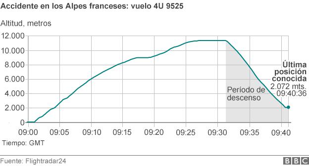 Los reportes de Flightradar24, un sitio web que rastrea el tráfico aéreo en todo el mundo, indican que el Airbus alcanzó los 38.000 pies -su altura de crucero- antes de comenzar a descender rápidamente, a las 10:47 AM (0947 GMT).