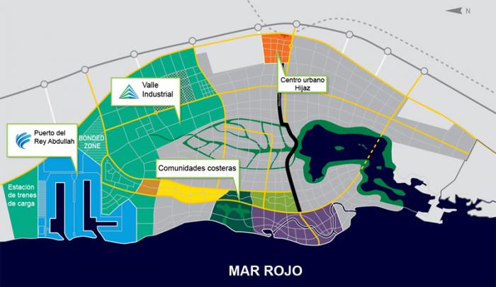 KAEC contará con un moderno puerto marítimo, un valle industrial, siete comunidades costeras y el centro económico y comercial Hijaz, donde en total confluirán aproximadamente ocho millones de personas.