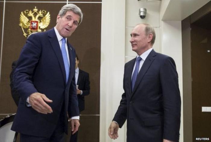 MOSCÚ.—El secretario de Estado norteamericano John Kerry mantuvo ocho horas de reuniones este martes con el presidente ruso Vladimir Putin y su canciller Sergei Lavrov en Sochi (sur), con ciertos indicios de distensión.