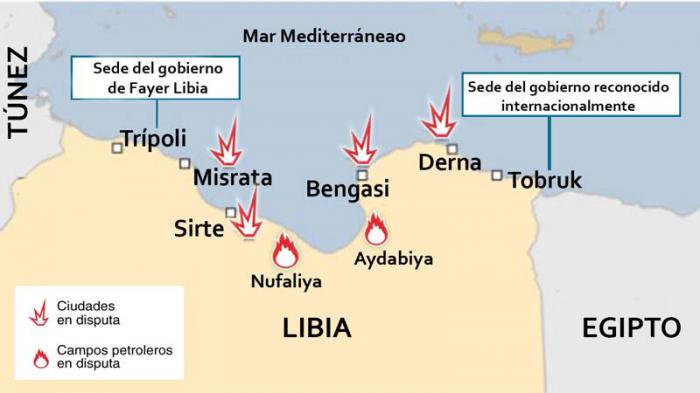 Bengasi está controlado por grupos islamistas y Misrata, la ciudad con mayor enclave portuario, es leal a las autoridades de Trípoli, donde está instalado el gobierno rival.
