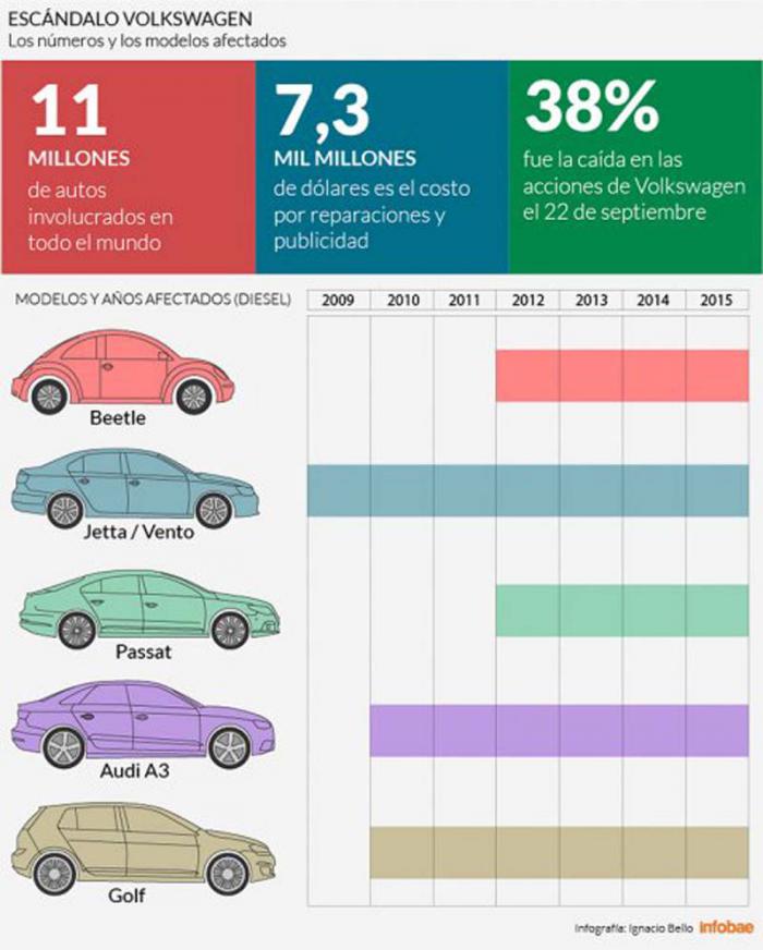 De acuerdo con el informe de varios organismos medioambientales, un programa informático instalado en los motores de diésel detecta el momento en que el auto es sometido a pruebas y mediante un sofisticado algoritmo disminuye la emisión de los gases contaminantes a la atmósfera. Una vez en circulación los conocidos VW podían emitir óxidos de nitrógeno (NOx) hasta 40 veces más de lo reglamentado en Estados Unidos.