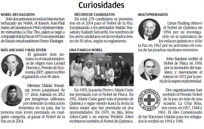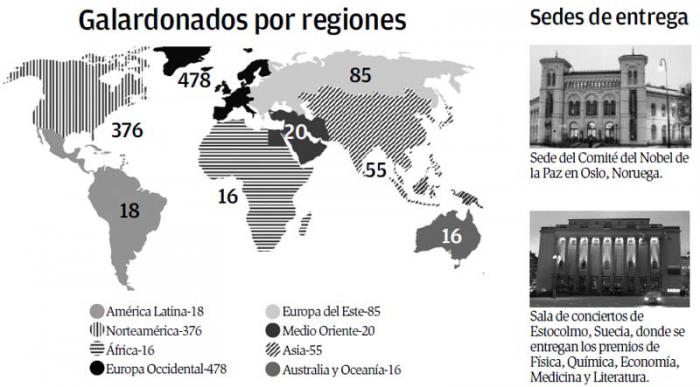 El Nobel de la Paz, por su parte, es elegido por el Comité Noruego del Nobel, y se entrega en la ciudad de Oslo, Noruega.