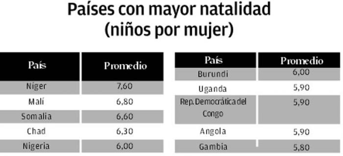 A pesar de tener poblaciones menores, hay otros países cuya tasa de natalidad actual disparará su número de habitantes durante este siglo.