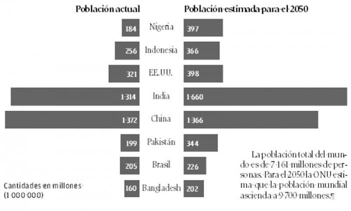 China tiene actualmente, 1 372 millones de personas y es el país más poblado del mundo, pero según datos de la ONU para el 2050 la India tomará este lugar.
