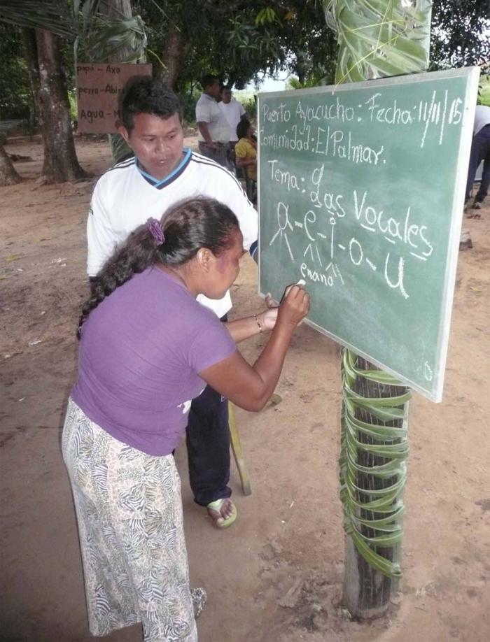 En seis grupos como ese (les llaman ambientes) el 80 % de la tribu aprende —bajo los auspicios de la Misión Robinson y por medio del método cubano Yo sí puedo— a leer, escribir, y hasta a hablar mejor el español; pues los guahibos (gentilicio de la etnia jivi) tienen su propio dialecto.