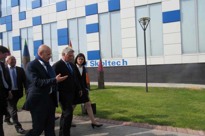 En la tarde, el dirigente cubano y los integrantes de la delegación conocieron la estrategia del fondo de desarrollo y comercialización de nuevas tecnologías de Skolkovo, en un recorrido por sus instalaciones.