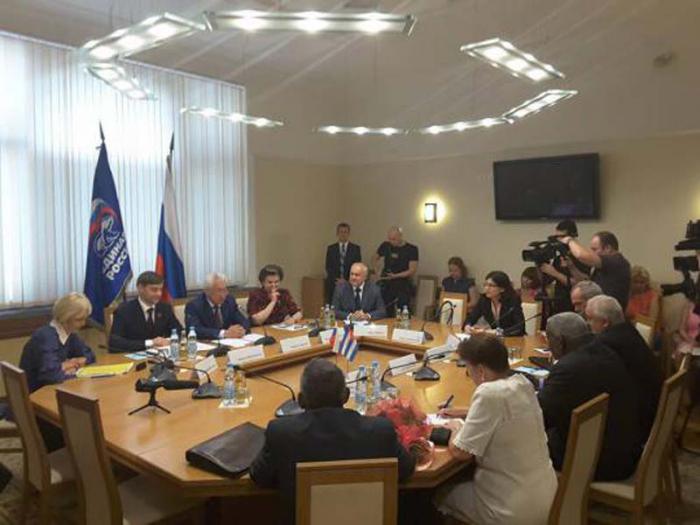 Como parte de su programa de tres días en el estado euroasiático, el Presidente del Parlamento cubano sostuvo encuentros con los Jefes de las fracciones del Partido Comunista de la Federación de Rusia y Rusia Unida en la Cámara baja del Parlamento, Guennady Ziuganov y Vladimir Vasíliev, respctivamente, con quienes analizó el desarrollo y profundización de las relaciones de ambas organizaciones políticas con el Partido Comunista de Cuba (PCC).