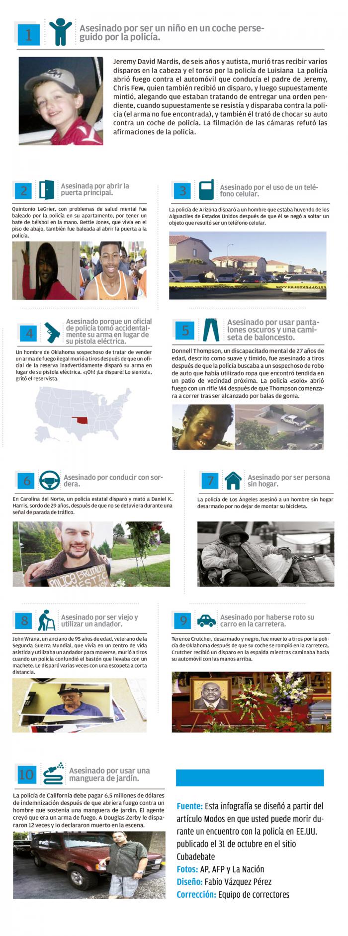 Whitehead, señala un número creciente de personas desarmadas que han sido baleadas de la forma más absurda solo por tener una postura «sospechosa», desafiar una orden o mostrar objetos que para los policías fueron «amenazas» a su seguridad. ¿Cómo defenderse contra las personas que han sido adoctrinadas en la creencia de que son superiores a ti, que su palabra es ley y que tienen el poder de tomar tu vida?, se cuestiona Whitehead.