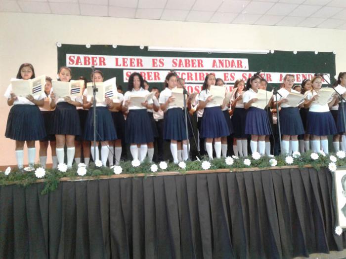 Con el protagonismo de delegados, asesores y directores docentes del Ministerio de Educación se celebró un encuentro pedagógico donde se resaltó las facetas de Martí como precursor en la pedagogía, en la política y en la literatura, concluyendo con la participación masiva de las decenas de profesores cantando la “Guantanamera”.
