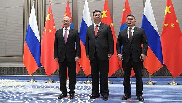 Los presidentes de China, Xi Jinping; Rusia, Vladímir Putin, y Mongolia, Khaltmaa Battulga, celebraron el sábado un encuentro trilateral en la ciudad china de Qingdao, donde analizaron entre otros temas la posibilidad de construir oleoductos y gasoductos a través de los tres países. El encuentro, cuarto que llevan a cabo las tres naciones conjuntamente, se celebró durante la XVIII cumbre de la Organización para la Cooperación de Shanghái, en la que China y Rusia son miembros fundadores y Mongolia constituye un observador. También se analizaron la mejora de las comunicaciones por carretera y ferrocarril, vitales en el plan chino de mejorar los enlaces euroasiáticos bajo el programa global de inversiones denominado «Nuevas Rutas de la Seda». (EFE)