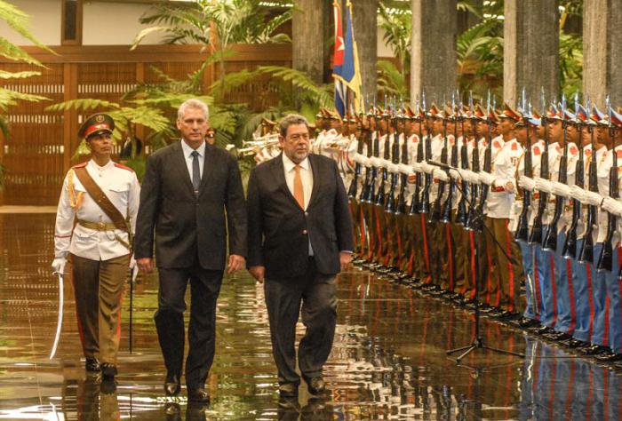 El Presidente de los Consejos de Estado y de Ministros, Miguel Díaz-Canel Bermúdez, recibió este viernes al primer ministro de San Vicente y las Granadinas, el honorable Dr. Ralph Everard Gonsalves, quien realiza una visita oficial a Cuba.