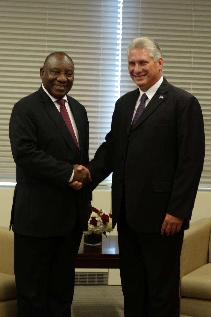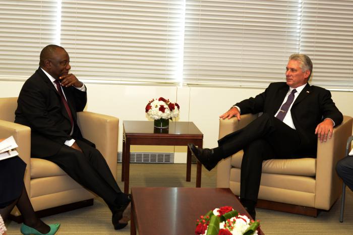 Como parte de su agenda de trabajo colateral en Naciones Unidas, el Presidente cubano, Miguel Díaz-Canel Bermudez, también se reunió con el mandatario sudafricano, Cyril Ramaphosa.