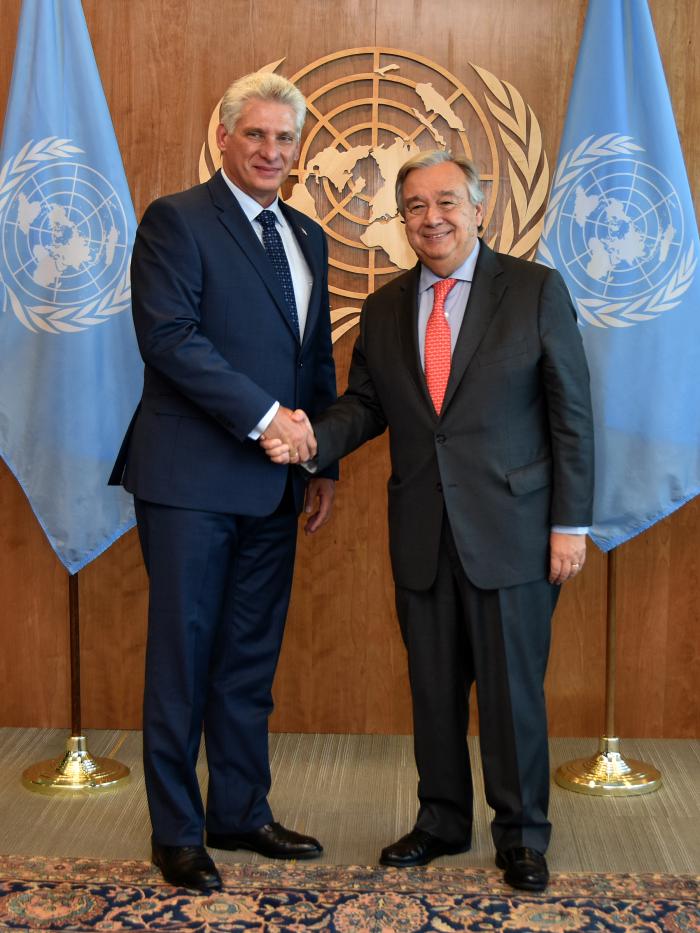 Pasadas las tres de la tarde, Díaz-Canel sostuvo un encuentro con Antonio Guterres, Secretario General de las Naciones Unidas, quien asumió esa responsabilidad en enero de 2017.
