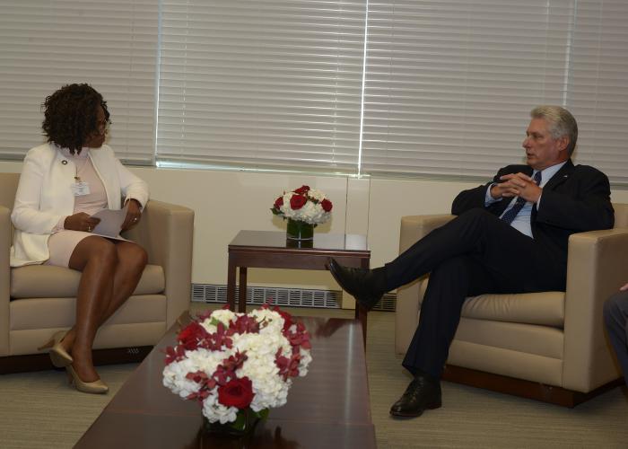 La víspera, Díaz-Canel también sostuvo un encuentro bilateral en la onu con Epsy Campbell, canciller de Costa Rica.